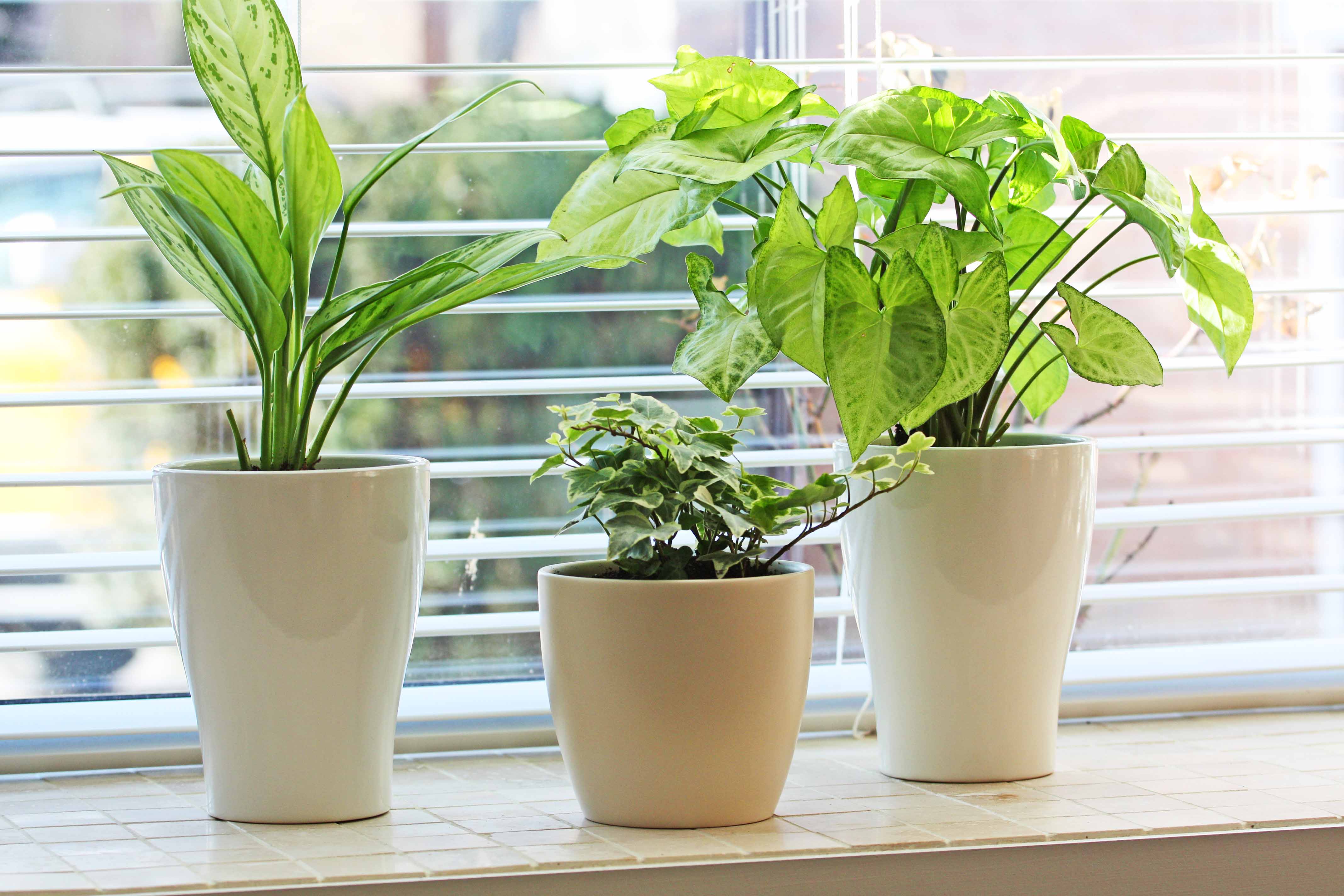 Wiosna to najlepszy czas w roku na zmiay i doskonała okazja aby zaangażować się w nowe projekty, duże lub małe. Będąc zainspirowana wiosną i obserwując przyrodę budzącą się do życia, zdecydowałam wprowadzić pewnne zmiany na mojej półce przy oknie, gdzie zazwyczaj mam kilka roślin doniczkowych. Poprzedni kwiat przerósł to miejsce, więc trzeba mu znaleźć nowe. Nie, nie wyrzucę go, przesadzę w większą doniczke i ulokuje w innym pokoju. Kilka dni temu odwiedziłam lokalną szkółkę i znalazłam kilka roślin które przypadły mi do gustu. Szukałam ładnego koloru i pięknie ukształtowanych liści. Zdecydowałam się na Syngonium, ma elegancki delikatny zielony kolor z odrobiną bieli a liście w kształcie serca, wygląda super w białej ceramicznej donicy. Tak na marginesie… kocham białe doniczki, proste i eleganckie, niemal każda roślina świetnie w nich wygląda. Drugi kwiat który wybrałam to Aglaonema, a trzeci to Angielska Ivy (Hedera Helix). Wszystkie trzy mają na liściach odcień bieli więc ładnie się razem prezentują.